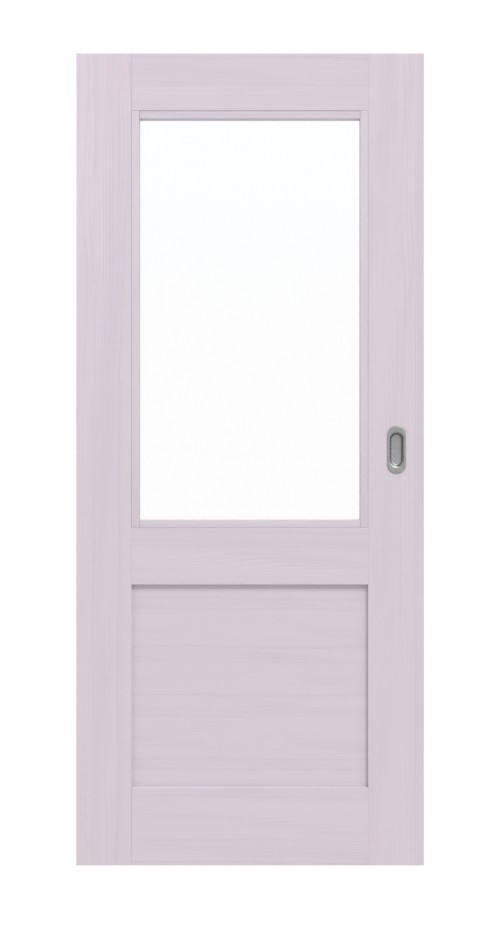 Otwór na światło, płaska wypełnienie i proste listwy szklane tworzą w tym modelu prosty design. Dzięki białej pigmentacji drewno świerkowe bez sęków zyskuje przyjazną aurę. Pod tym widoczne są delikatnie zarysowane słoje drewna, które czynią każde drzwi unikalnym dziełem.