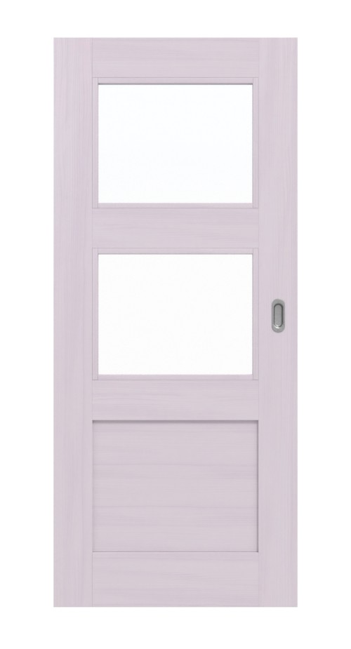 Nowoczesny design z dwoma przeszkleniami i wypełnieniem z drewna naturalnego zachwyca swoją klarowną linią. Delikatnie rysują się bezsęczne usłojenia świerka pod białym pigmentem, nadając każdemu skrzydłu drzwi indywidualny charakter.