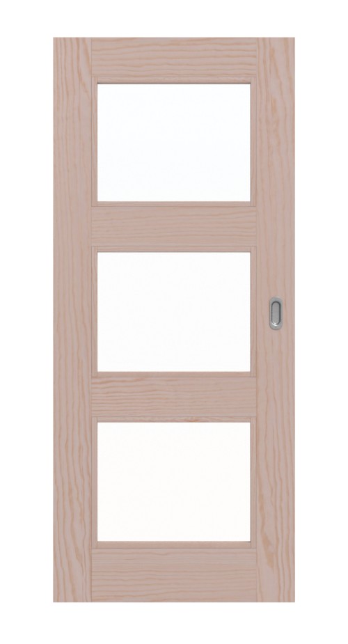 Wyraźne kontury charakteryzują trzy otwory świetlne, które układają się jeden nad drugim. Drewno sosnowe ozdobione jest unikalnym usłojeniem bez sęków, które na każdym skrzydle drzwi jest niepowtarzalne.