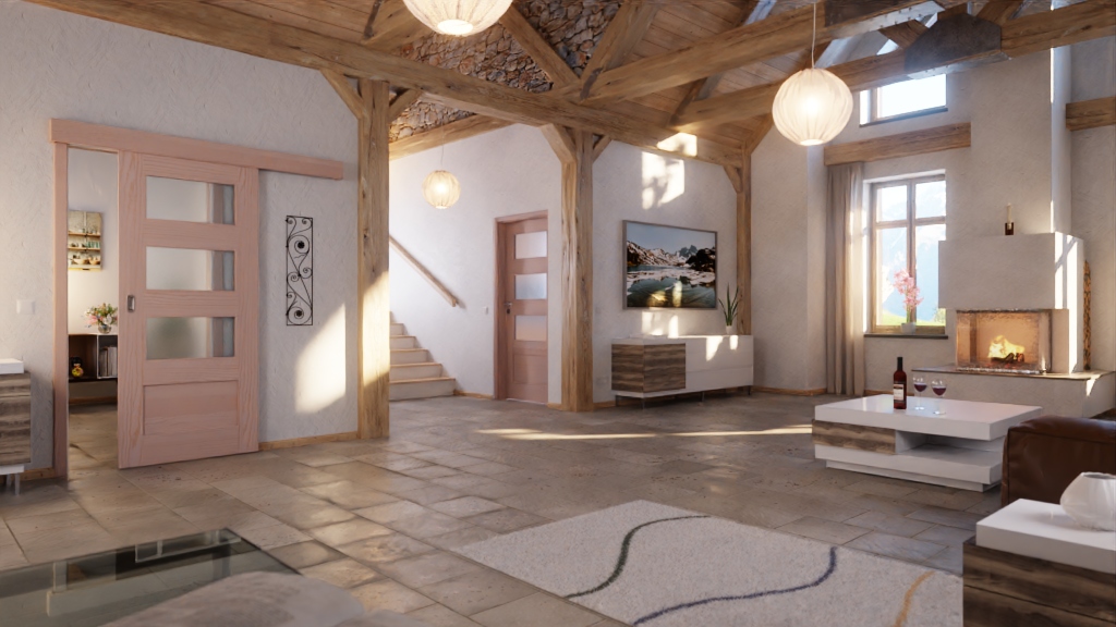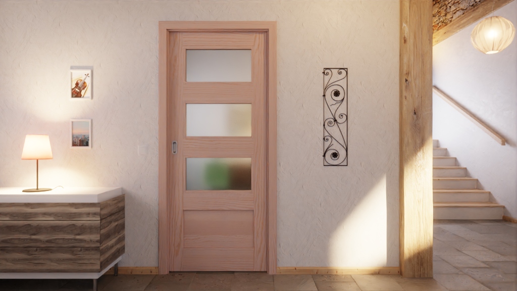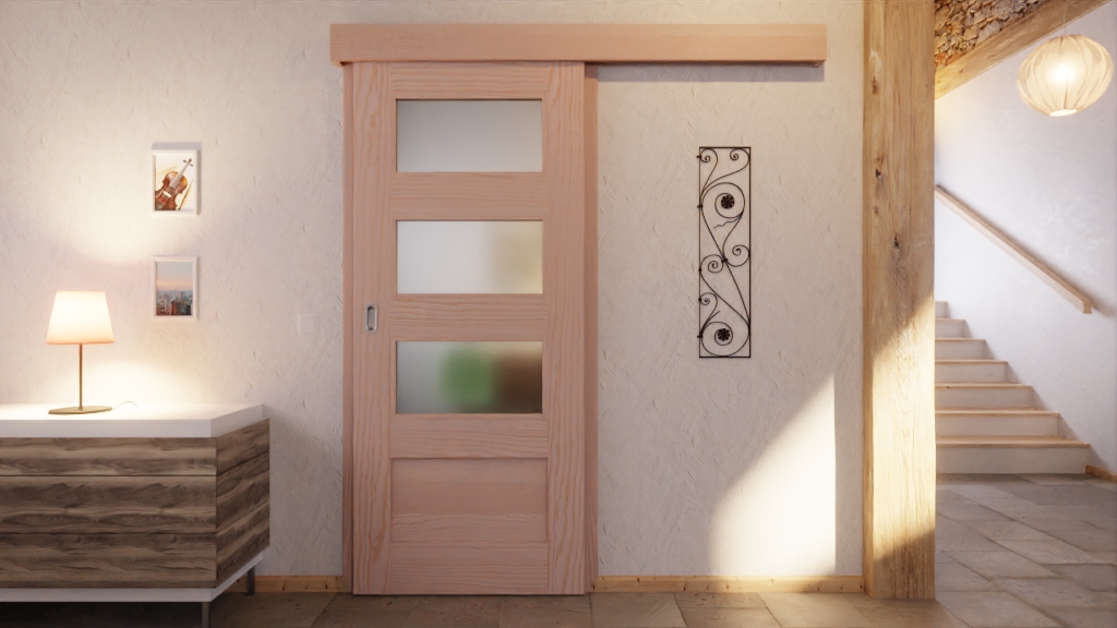 Robustne drzwi przesuwne z litego drewna w stabilnej warstwie klejonej: