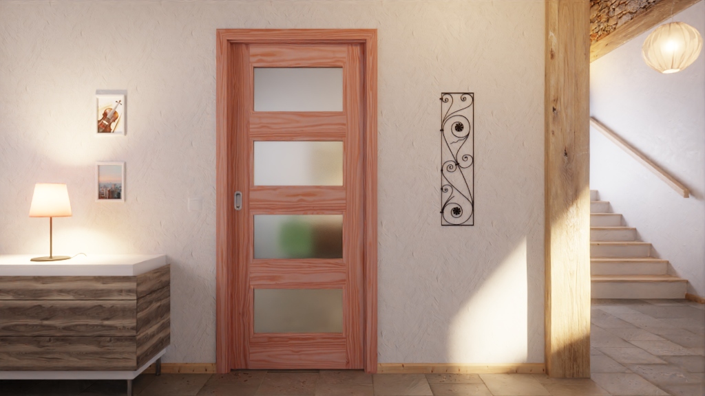 Warstwowa konstrukcja drzwi przesuwanych zapewnia wysoką stabilność. Dodatkowo drzwi umożliwiają optymalne wykorzystanie przestrzeni w małych pomieszczeniach, ponieważ nie otwierają się do środka.