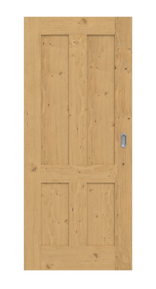 W skrzydle drzwi znajdują się cztery płaskie wypełnienia, które emanują nowoczesną klarownością i spokojem. Żywe słoje z astenowymi ramkami przebiegają przez dąb i nadają każdemu drzwiom indywidualny charakter.
