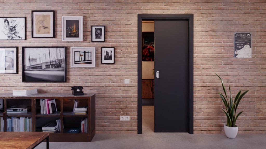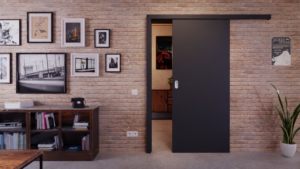 Atrakcyjne drzwi przesuwne w ultramatowym antracycie, zapewniające więcej przestrzeni do ruchu w Twoim domu: