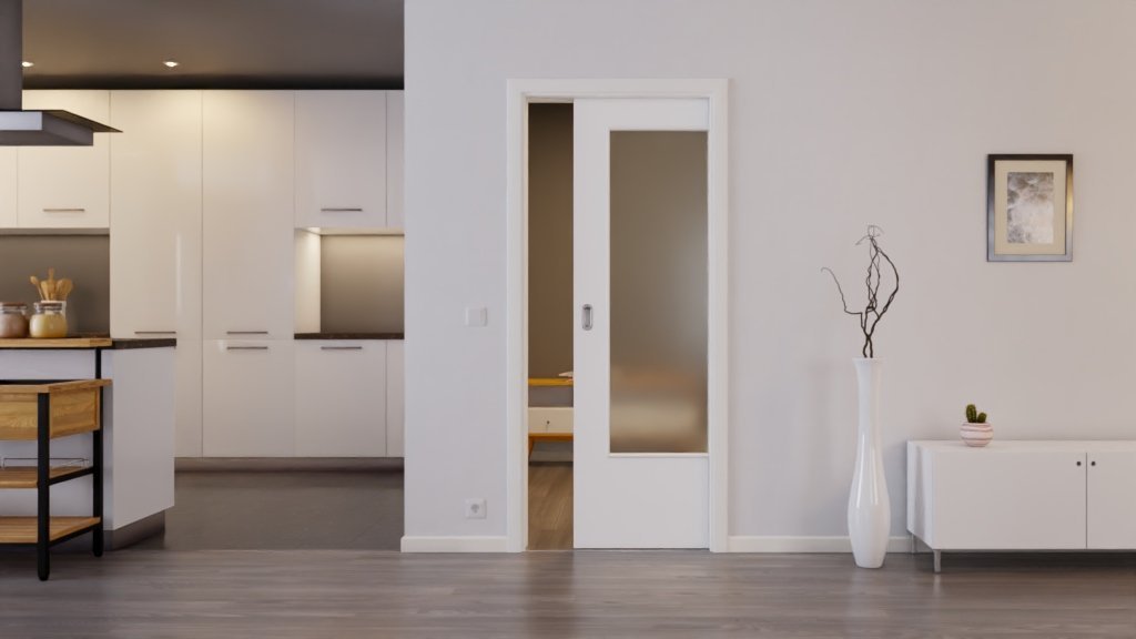 Atrakcyjne drzwi przesuwne w ultramatowej bieli, które zapewniają więcej przestrzeni do poruszania się w Twoim domu: