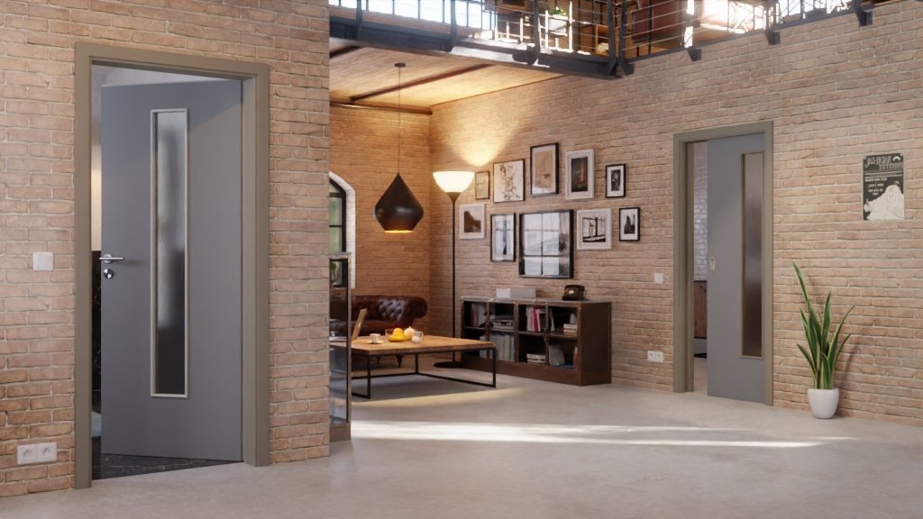 Dzięki wysokiej odporności na zabrudzenia i odciski palców można długo cieszyć się matową powierzchnią . Światło wpada do pomieszczeń przez wąskie wycięcie na szybę w środkowej części skrzydła drzwiowego.