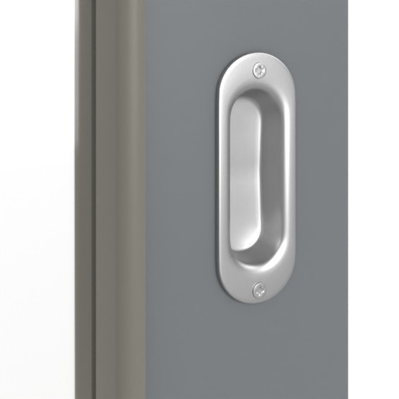 Szara powierzchnia zachwyca satynowym połyskiem, który dzięki wysokiej odporności na odciski palców i zabrudzenia będzie cieszył oko przez długi czas. Duży wycięty fragment szkła zapewnia doskonałe doświetlenie pomieszczeń.
