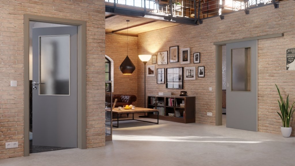 Elegancki model drzwi w ultramatowym kolorze szarości dla oszczędności miejsca w Twoim domu: