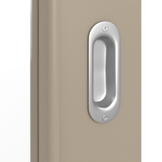 W środkowej części skrzydła drzwiowego zamontowano stabilną warstwę środkową z płyty wiórowej pełnej . W zestawie znajduje się również owalna muszla uchwytowa .