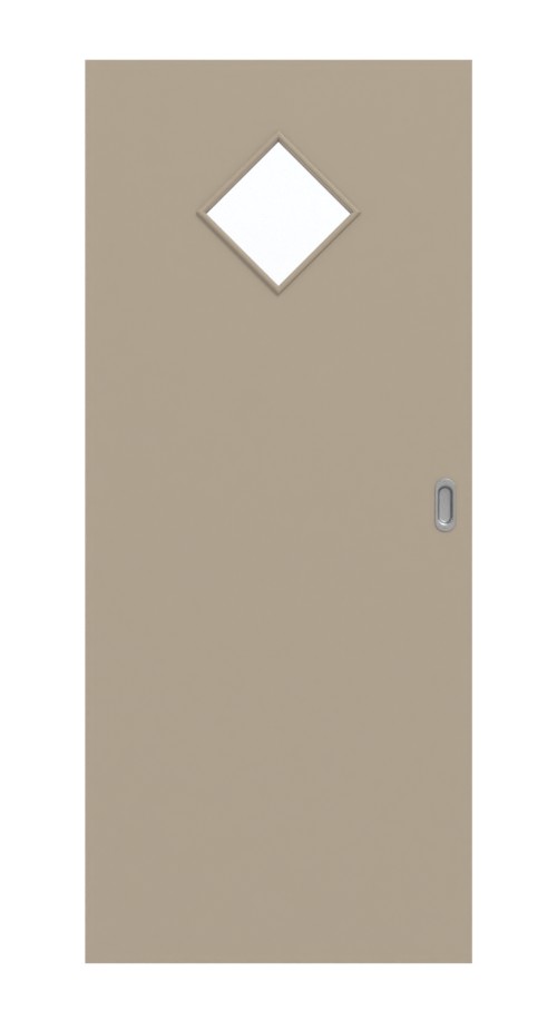 Wycięcie na szybę rozjaśnia szarobrązowy wygląd skrzydła drzwiowego. Satynowa powierzchnia przekonuje eleganckim wykończeniem wizualnym i przyjemną w dotyku fakturą.