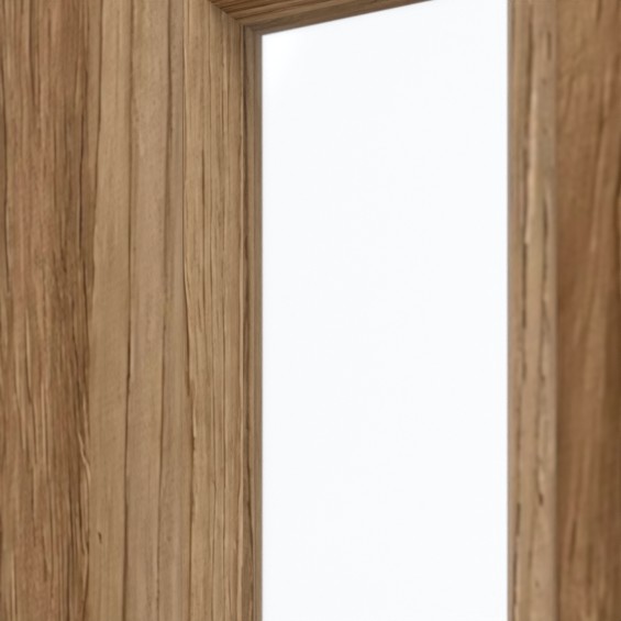Model zachwyca eleganckim kontrastem rustykalnych i nowoczesnych elementów stylu. Dekor drewna nadaje mu naturalny urok, a wycięcia z satynowego szkła przyciągają wzrok i dodają szyku.