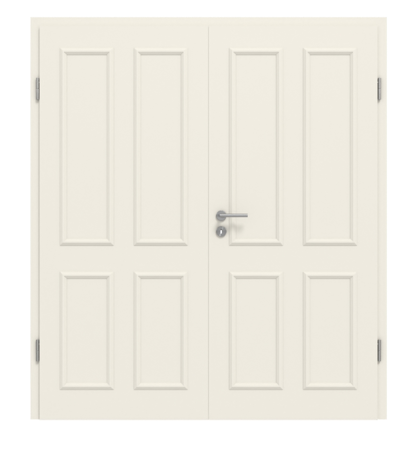 Każde skrzydło drzwiowe zachwyca czterema wąskimi drewnianymi kasetami. Nałożone listwy tworzą tradycyjny profil i nadają skrzydłu drzwiowemu eleganckie wykończenie wizualne.