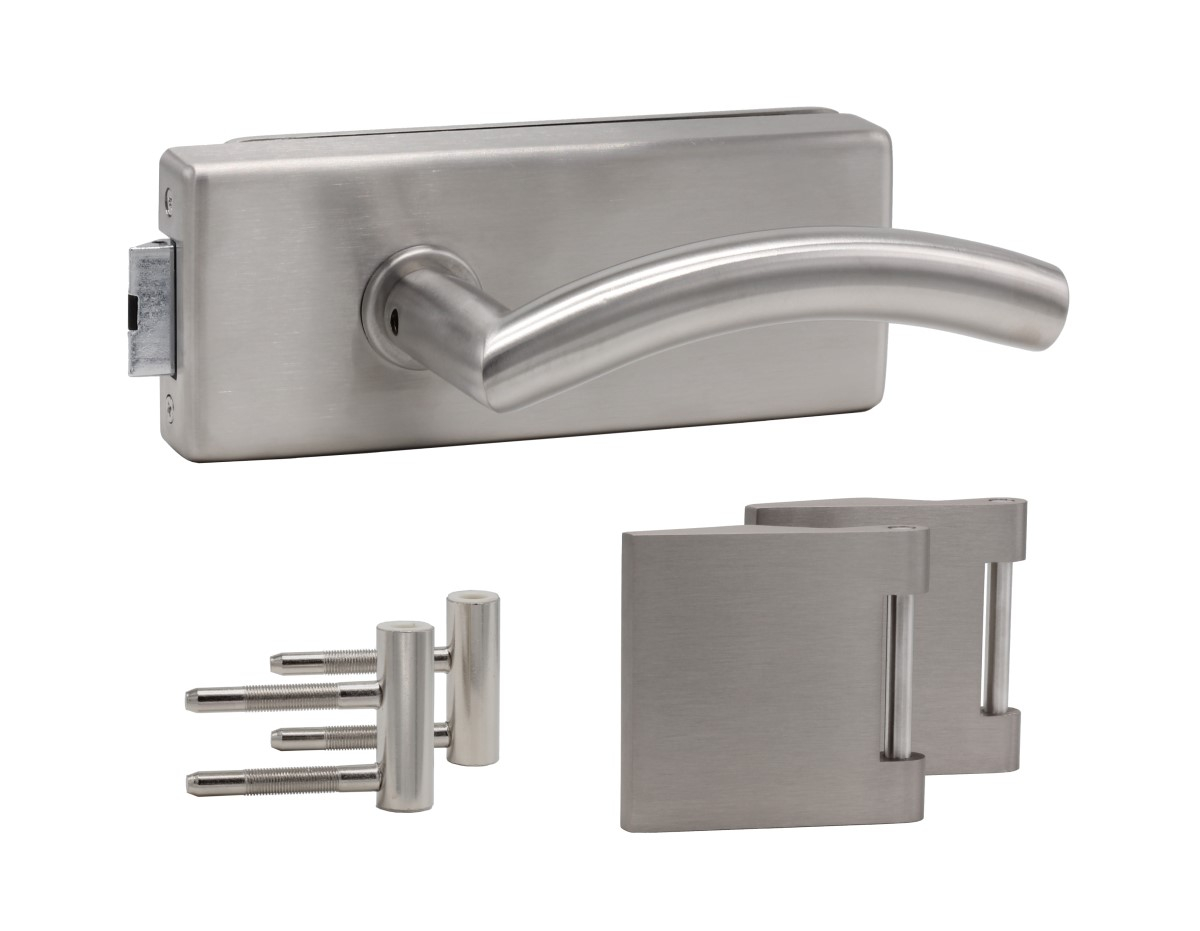 Podkreśl nowoczesny wygląd swoich drzwi całoszklanych za pomocą zamka do drzwi szklanych Palma i klamki Lisa od Südmetall.