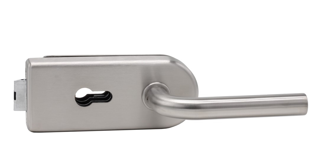 Podkreśl nowoczesny wygląd swoich drzwi całoszklanych dzięki zamkowi do drzwi szklanych Valencia i klamce Patrik firmy Südmetall.