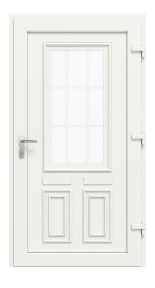 T036 Premium Plus o identycznym wzornictwie. Skrzydło drzwiowe tej wersji, o grubości 30 mm, posiada wewnątrz płytę MDF o grubości 4 mm oraz potrójne szyby termoizolacyjne.- wytrzymałe drzwi wejściowe z tworzywa sztucznego o ekskluzywnym wyglądzie