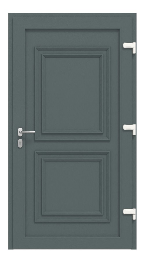 • Zakres dostawy: Drzwi wejściowe z ramą, zawiasami, zamkiem i progiem, dodatkowe elementy do skonfigurowania.