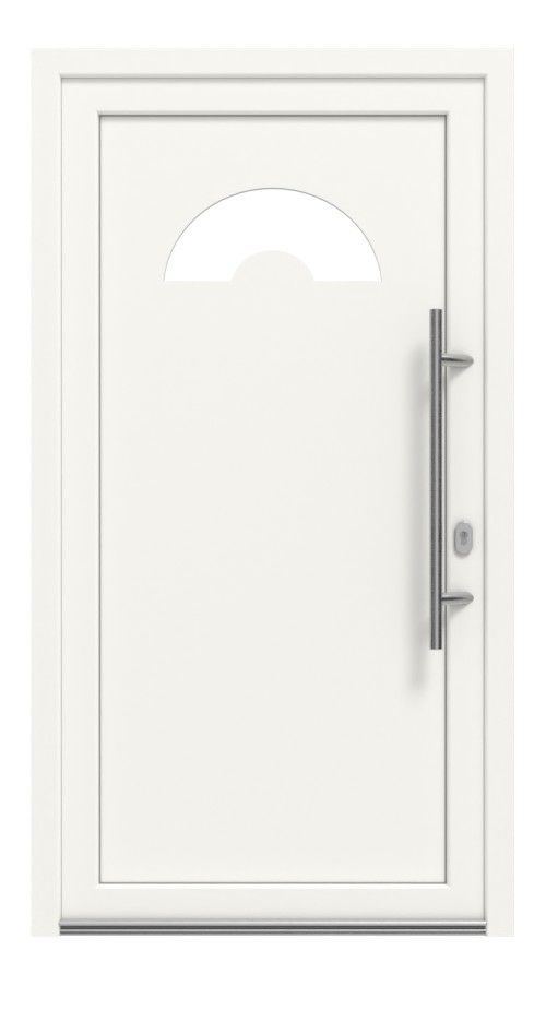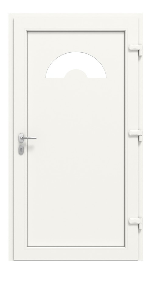 • Konstrukcja: izolowany termicznie profil wielokomorowy w ramie osłonowej i skrzydle z wyjątkowo odpornego na uderzenia PVC, skrzydło drzwiowe z wysoko izolującym wypełnieniem z tworzywa sztucznego typu sandwich z rdzeniem MDF 4 mm, grubość wypełnienia: 30 mm, uszczelki obwodowe