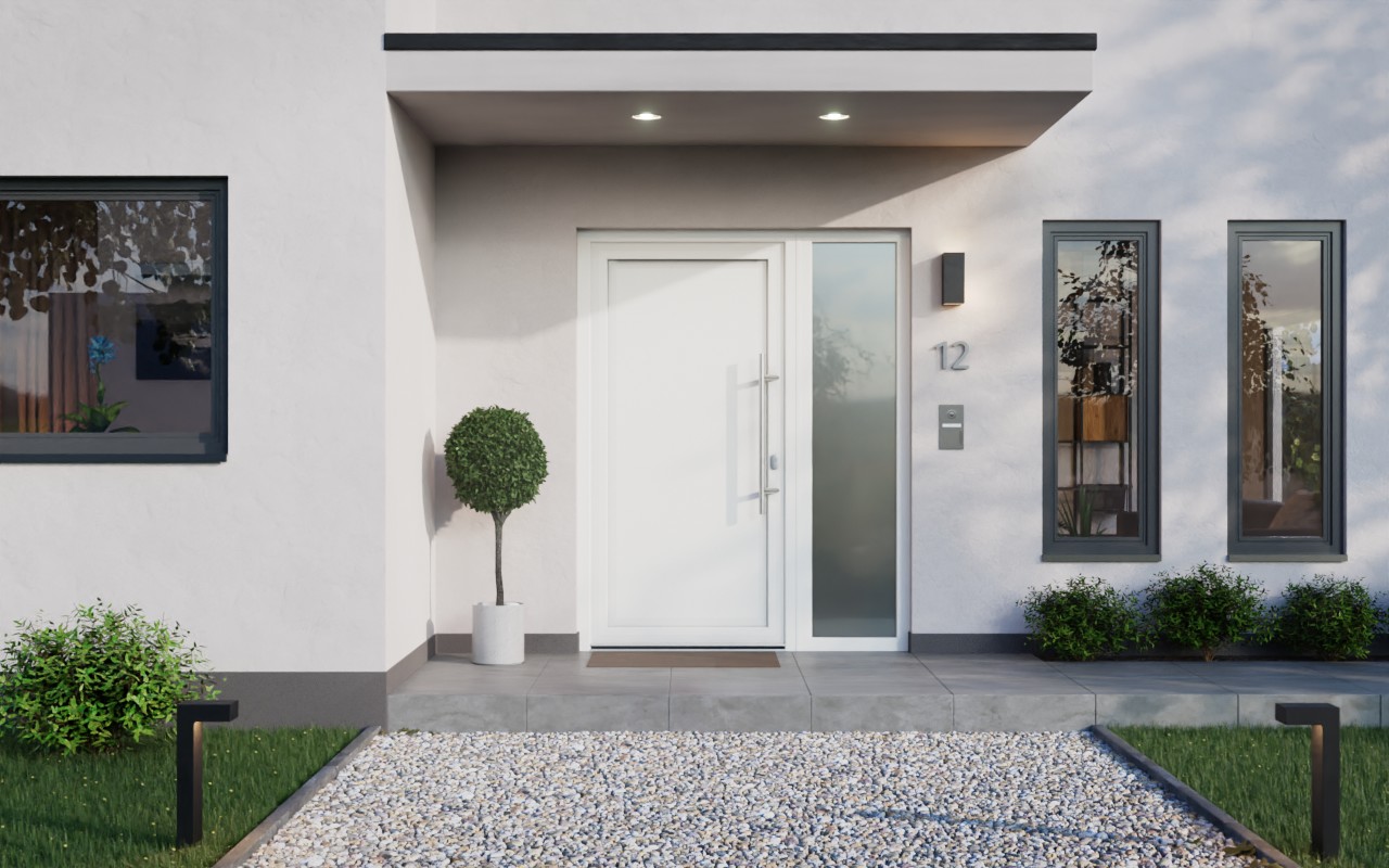 Haustür mit Seitenteil Kunststoff Premium Plus F001 RAL 9016-RAL 9016 Frontansicht außen