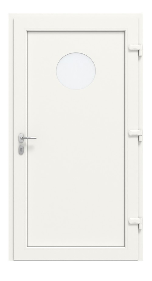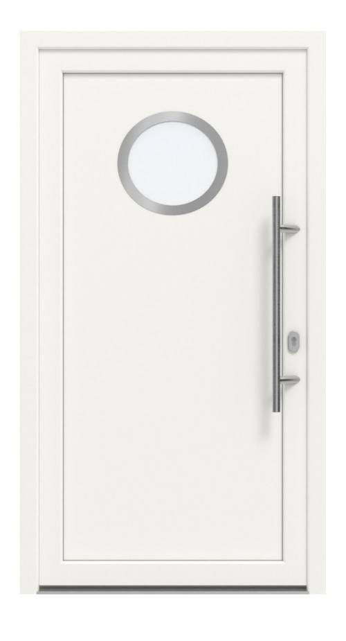Wycięcie na szybę przypominające okrągłe okno w górnej części drzwi nadaje im morski charakter. Uszlachetniona rama ze stali szlachetnej nadaje drzwiom elegancki wygląd i sprawia, że model ten przyciąga wzrok.