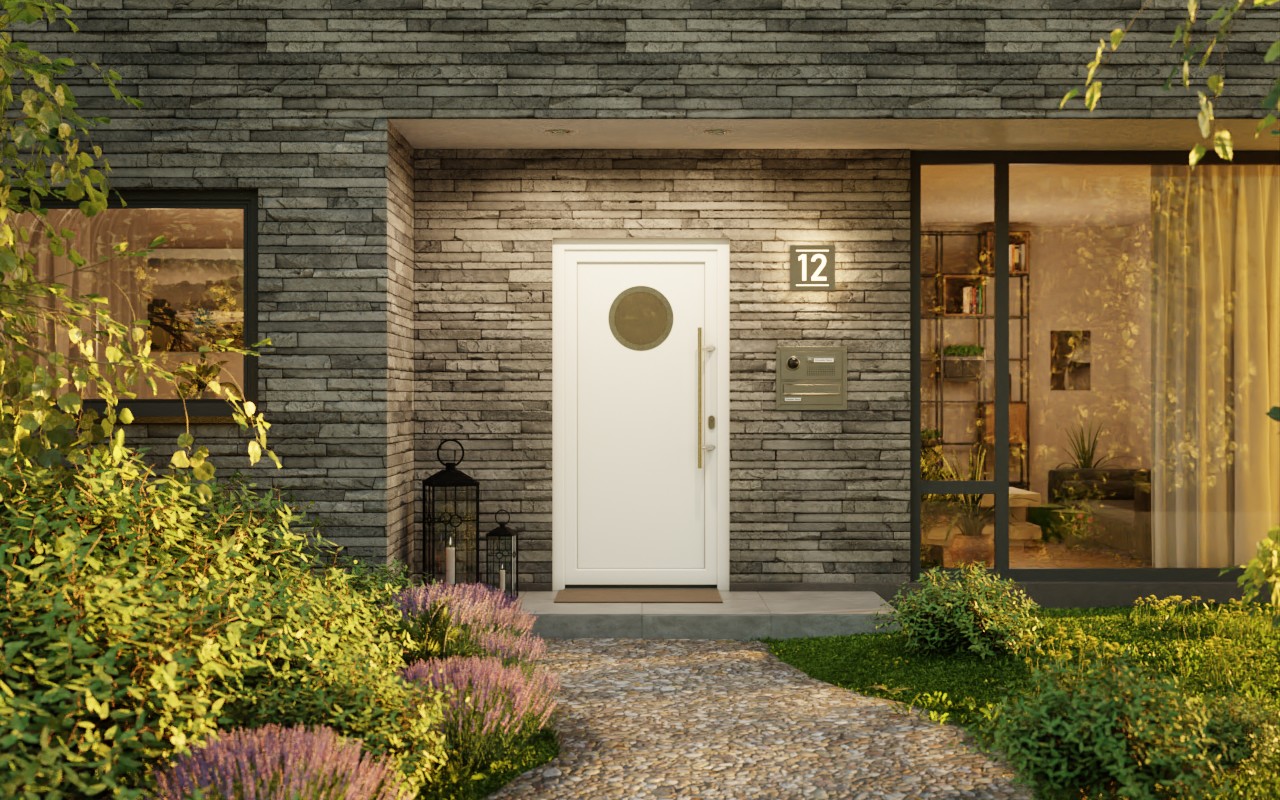 Aby stworzyć urocze i funkcjonalne wejście do domu: Drzwi zewnętrzne F011 z serii Premium, wykonane z wytrzymałego tworzywa sztucznego, charakteryzują się eleganckim designem i doskonałym wyposażeniem.