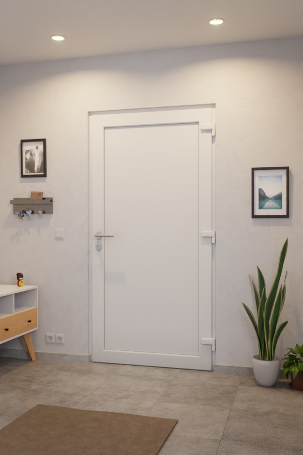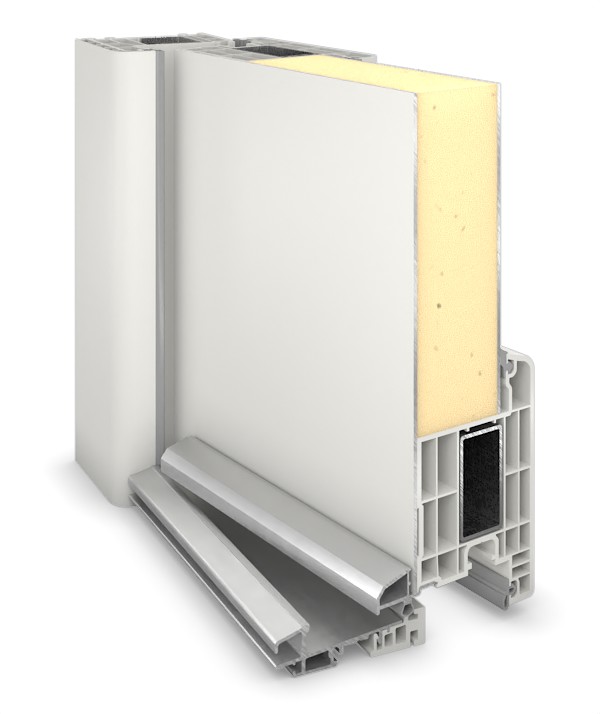 Konstrukcja drzwi wejściowych z skrzydłem zachodzącym na jedną stronę charakteryzuje się pomysłowym połączeniem wielokomorowych profili z tworzywa sztucznego oraz wysoce izolacyjnego wypełnienia skrzydła . Na zewnątrz konstrukcję otacza równie cienka, co odporna na zużycie warstwa aluminium . Zwiększa ona wytrzymałość i stabilność drzwi, a jednocześnie znacznie ogranicza ryzyko wygięcia w przypadku dużych wahań temperatury. Próg z izolacją termiczną oraz dwie warstwy uszczelek na całym obwodzie zapewniają bardzo dobrą izolację termiczną drzwi wejściowych, zapobiegając powstawaniu mostków termicznych oraz przedostawaniu się zimna i wilgoci.