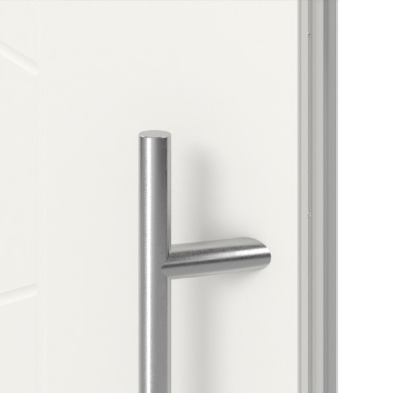 Jeśli chodzi o bezpieczeństwo, drzwi wejściowe już w wersji standardowej zapewniają solidną podstawę dzięki trójwymiarowo regulowanym zawiasom oraz zamknięciu składającemu się z rygla głównego i dwóch haków obrotowych . W zestawie znajdują się również aluminiowa osłona przeciwdeszczowa, cylinder profilowy z trzema kluczami oraz zestaw okuć składający się z klamki zewnętrznej, klamki wewnętrznej i rozet.
