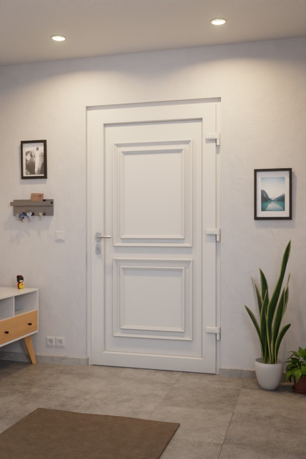 • Zakres dostawy: Drzwi wejściowe z ramą osłonową, zawiasami, zamkiem, progą i osłoną przeciwdeszczową, inne elementy do konfiguracji