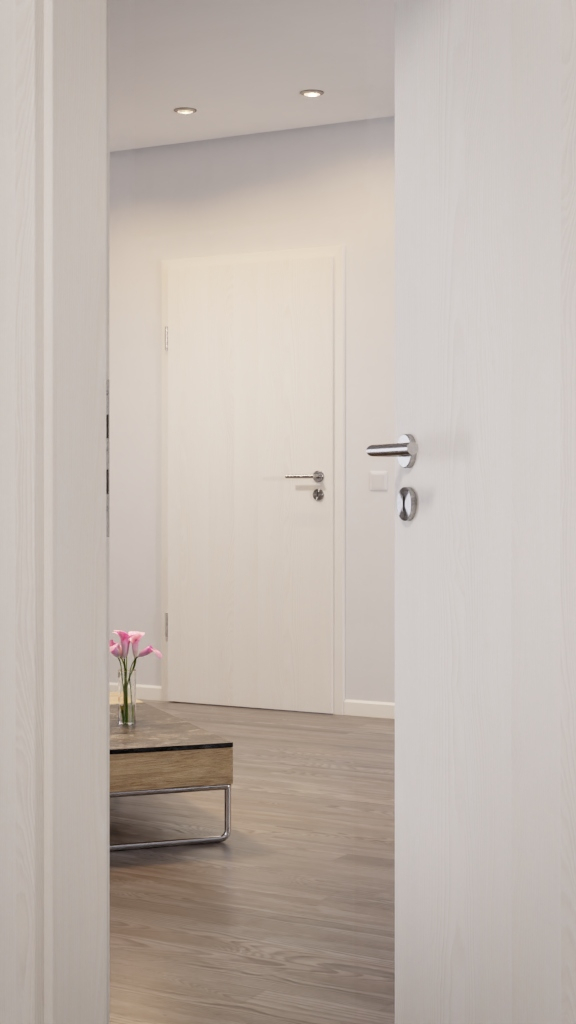Niedrogie drzwi w wyglądzie drewna: Drzwi wewnętrzne 4.15 w kolorze białej jesionu zachwycają autentycznym designem i atrakcyjną ceną.