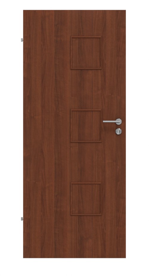 Ciemny odcień nadaje dekoracyjnej powierzchni rustykalny wygląd. Dzięki trzem kwadratowym kasetom skrzydło drzwiowe zyskuje indywidualny charakter.