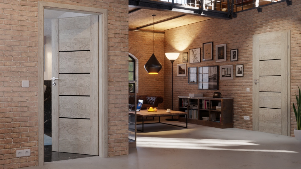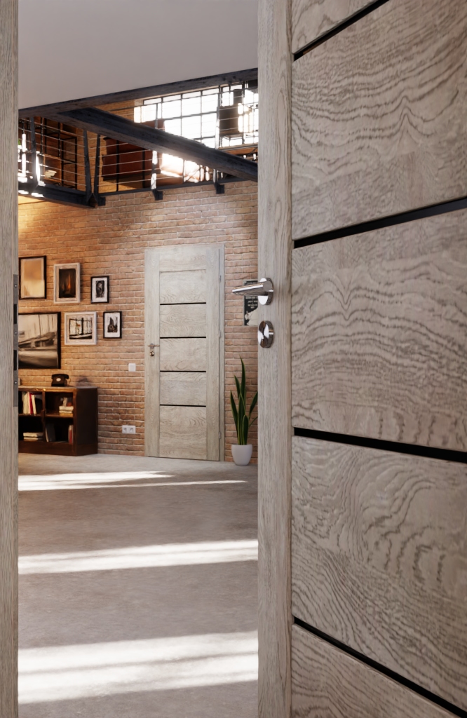 Drzwi wewnętrzne z czarnym szkłem w zestawie z trzema zawiasami: