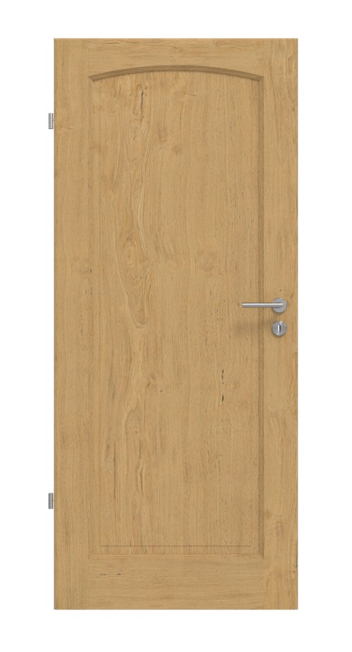 Serce ponadczasowego designu stanowi profilowane wypełnienie, które w górnej części kończy się łukiem segmentowym. Okrążające fryzy z pięknym profilowaniem dopełniają klasyczny wygląd. Dla przytulnych chwil w domu zadba ciepłe drewno dębowe, ozdobione naturalną słojowością.