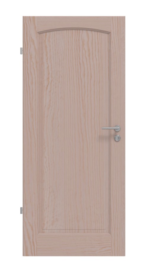 Serce ponadczasowego designu stanowi profilowana wypełnienie, która w górnej części kończy się łukiem segmentowym. Okrążające fryzy z pięknym profilowaniem dopełniają klasyczny wygląd. Bezsękowe usłojenie rozciąga się na drewno sosnowe i nadaje każdemu skrzydłu drzwi indywidualny charakter.