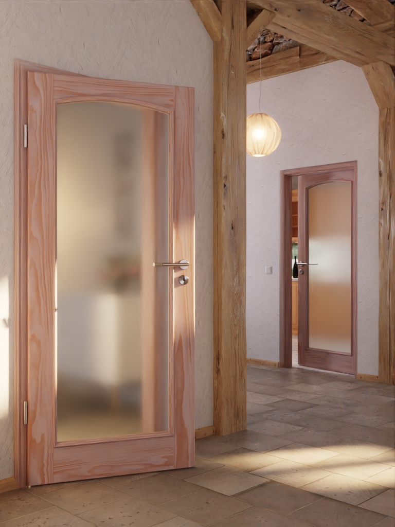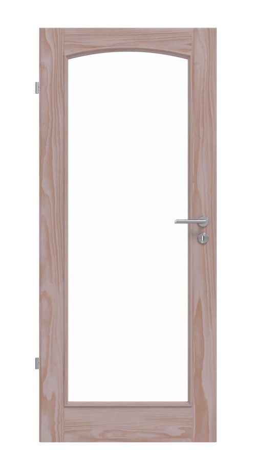 Duże szkło w kształcie łuku wpuszcza dużo światła do Twoich pomieszczeń. Szerokie listwy są stylowo podkreślone przez ozdobne ramki szklane. Bezsękowe usłojenie na drewno jodłowe nadaje każdym drzwiom indywidualny charakter.