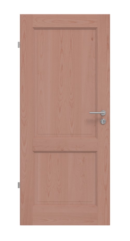 Dwie profilowane wypełnienia są otoczone ozdobnymi fryzami, co tworzy elegancki wygląd z wyraźnymi konturami. Naturalna indywidualność drewna bukowego objawia się w każdej drzwiach w niepowtarzalnym usłojeniu.