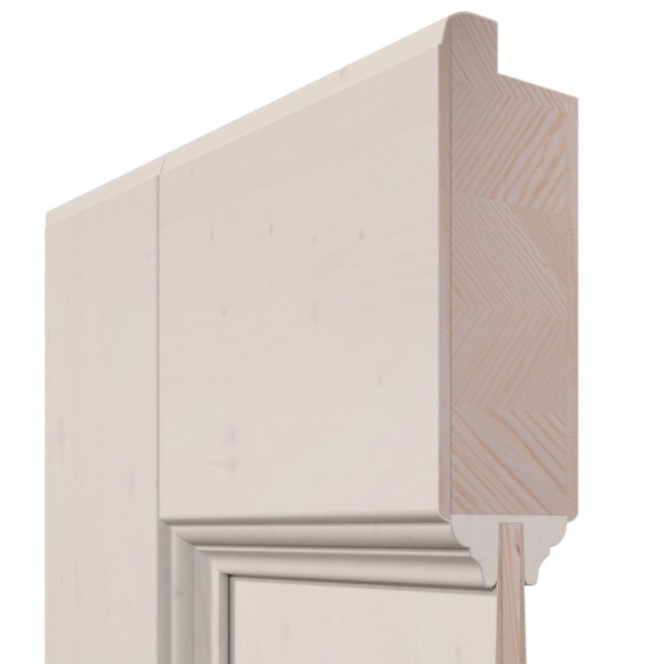 Osadzone w szerokich, ozdobnych fryzach, obie profilowane wypełnienia oferują ponadczasowy wygląd eleganckiego piękna. Drewno sosnowe pokryte jest białym pigmentem, który delikatnie pozwala prześwitywać słojom z gałęziami.