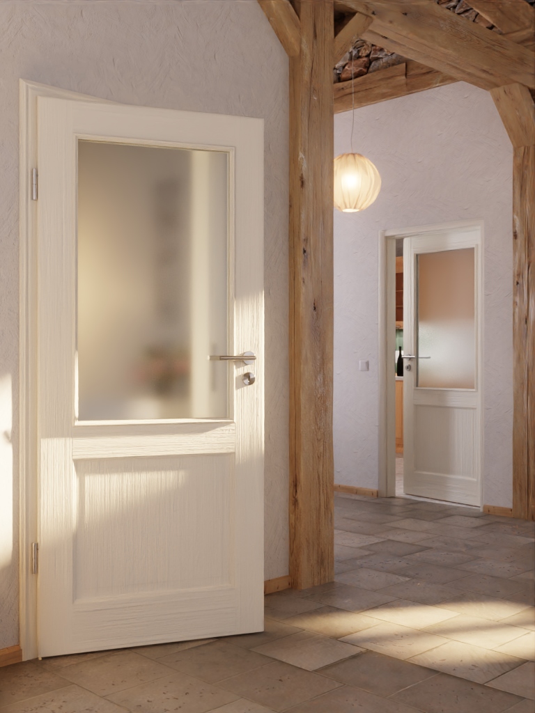 Urokliwe drzwi wewnętrzne z drewna litego z 40 mm grubym skrzydłem drzwiowym: