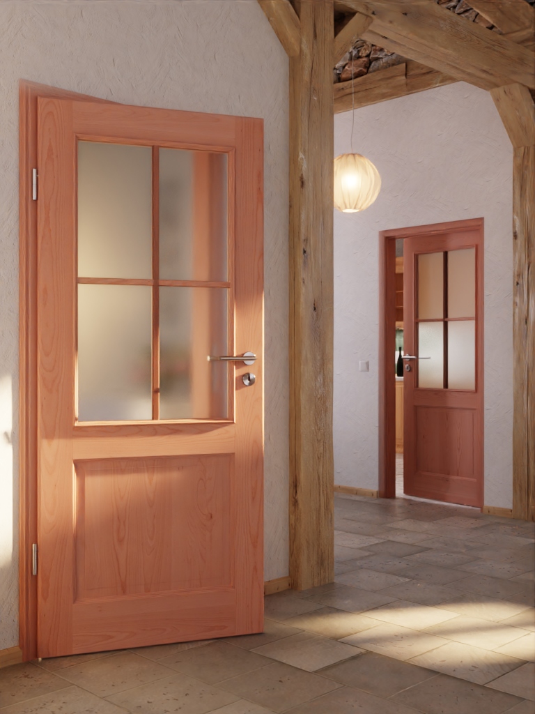 Dzięki klejonemu konstrukcji warstwowemu drzwi z litego drewna wykazują szczególną stabilność. Wybór wykończenia powierzchni należy do Ciebie – od nieobrobionego przez olejowane po lakierowane, w menu poniżej masz różne możliwości.