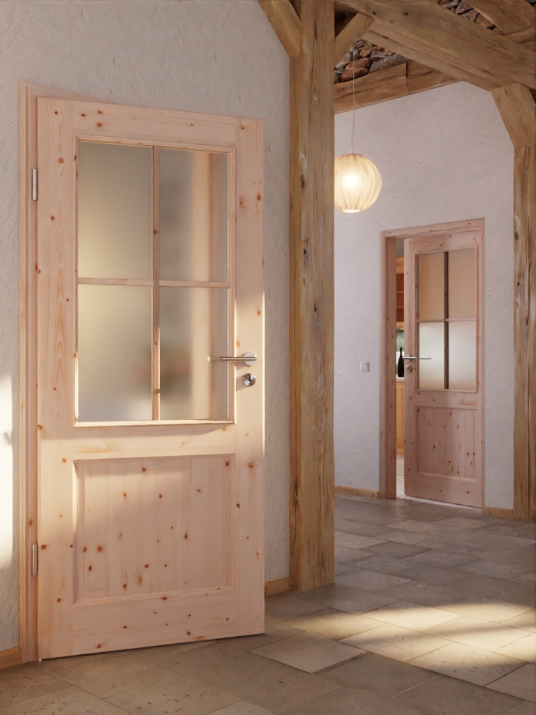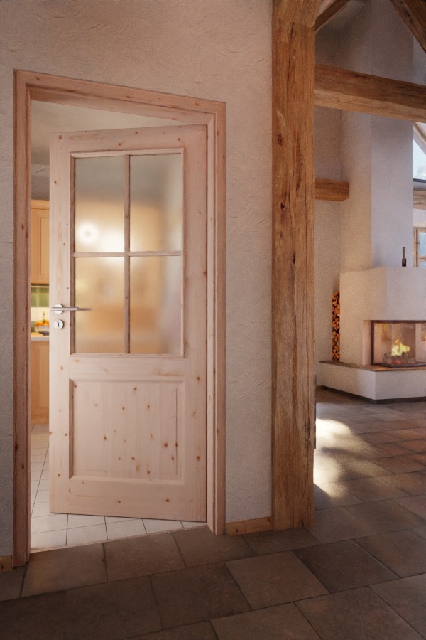 Stylowe drzwi wewnętrzne z litego drewna o grubości skrzydła drzwiowego około 40 mm: