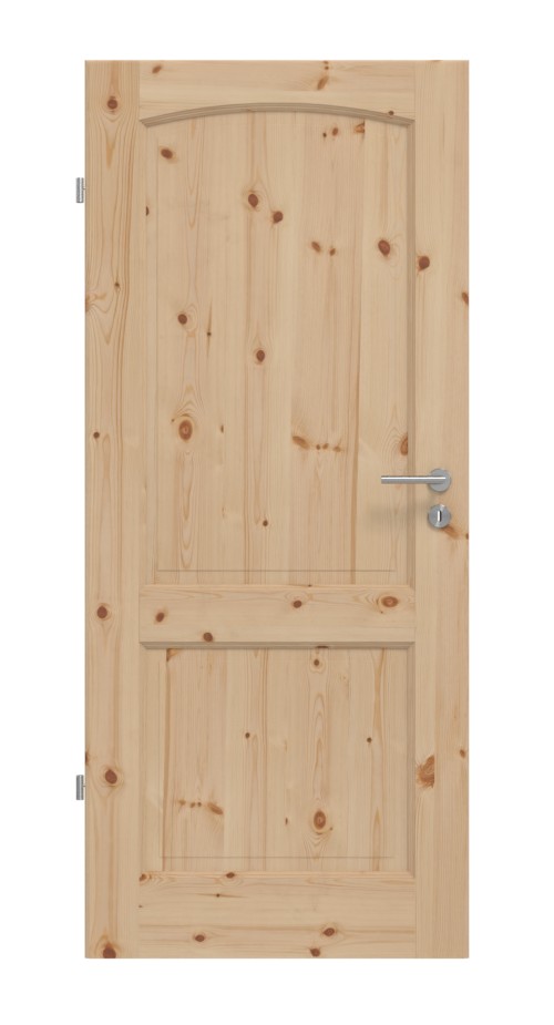Duża wypełnienie z łukiem segmentowym i mniejsze poniżej definiują klasyczny wygląd modelu. Eleganckie profilowania podkreślają wybrane akcenty. Rustykalny charakter drewna sosnowego jest w dużej mierze kształtowany przez wyraźne sęki.