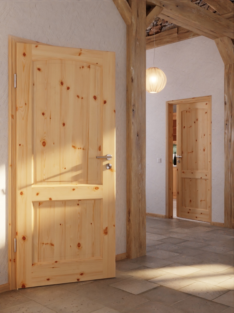 Drzwi z litego drewna zachwycają doskonałą stabilnością, którą osiągają dzięki klejonej konstrukcji warstwowej. Standardowo nieobrobiona powierzchnia może być pomalowana na Twój ulubiony kolor. Możesz również wybrać w menu konfiguracji jedną z wysokiej jakości wykończeń i otrzymać drzwi już z gotowym wykończeniem – wybór należy do Ciebie.