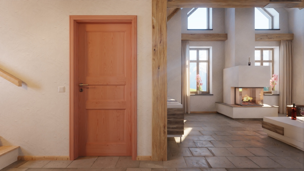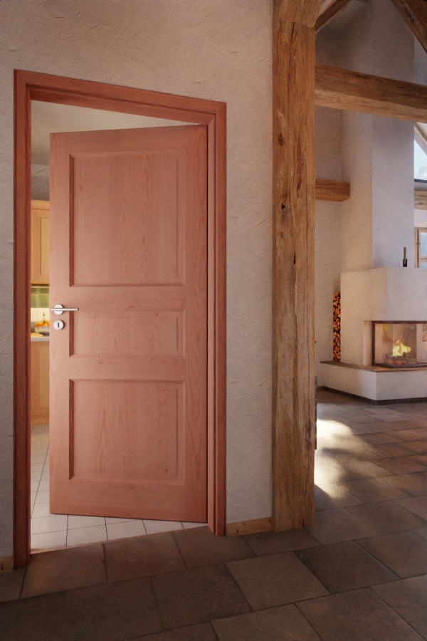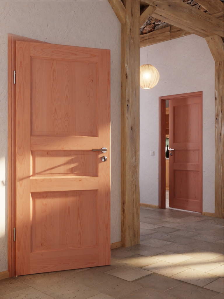 Stylowa wewnętrzna drzwi z naturalnego drewna w klejonym warstwowo: