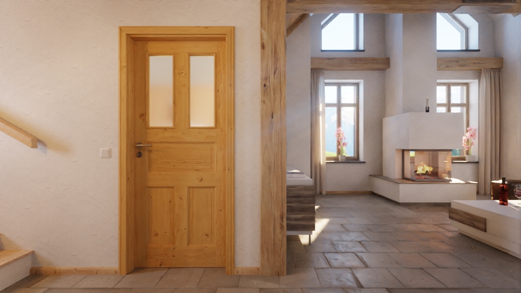 Drzwi z litego drewna klejone warstwowo wyróżniają się szczególnie wysoką stabilnością. W menu konfiguracji mają Państwo wybór, czy chcą otrzymać model z standardowo nieobrobioną powierzchnią, czy z wysokiej jakości wykończeniem.