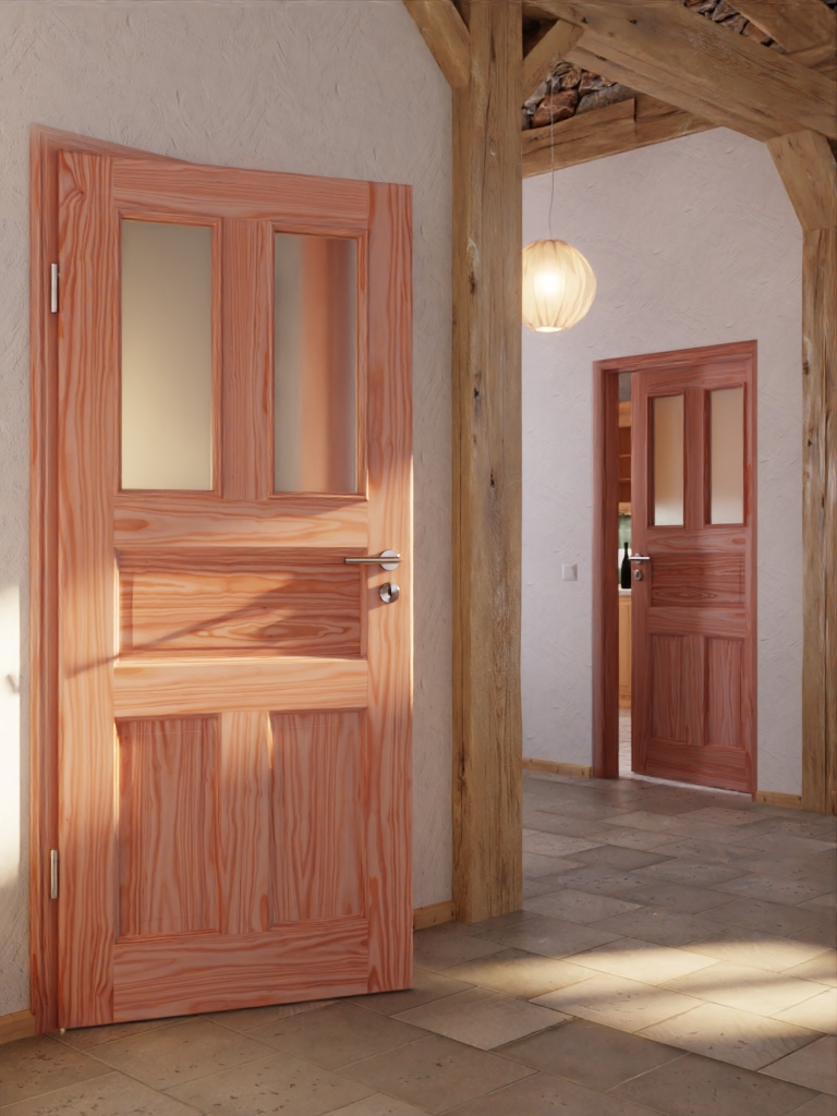 Wysokiej jakości drzwi wewnętrzne z litego drewna o grubości skrzydła drzwiowego około 40 mm: