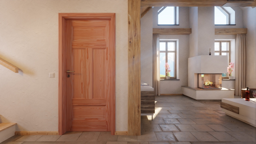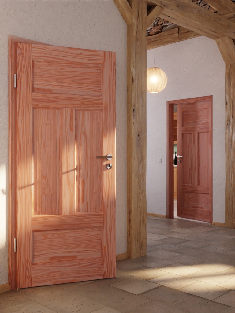 • Indywidualne usłojenie modrzewia na każdym skrzydle drzwiowym