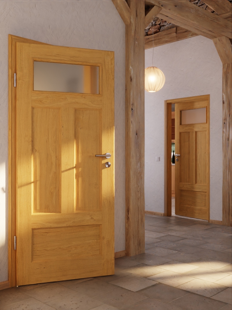 Starannie wykonane drzwi wewnętrzne z litego drewna w konstrukcji klejonej: