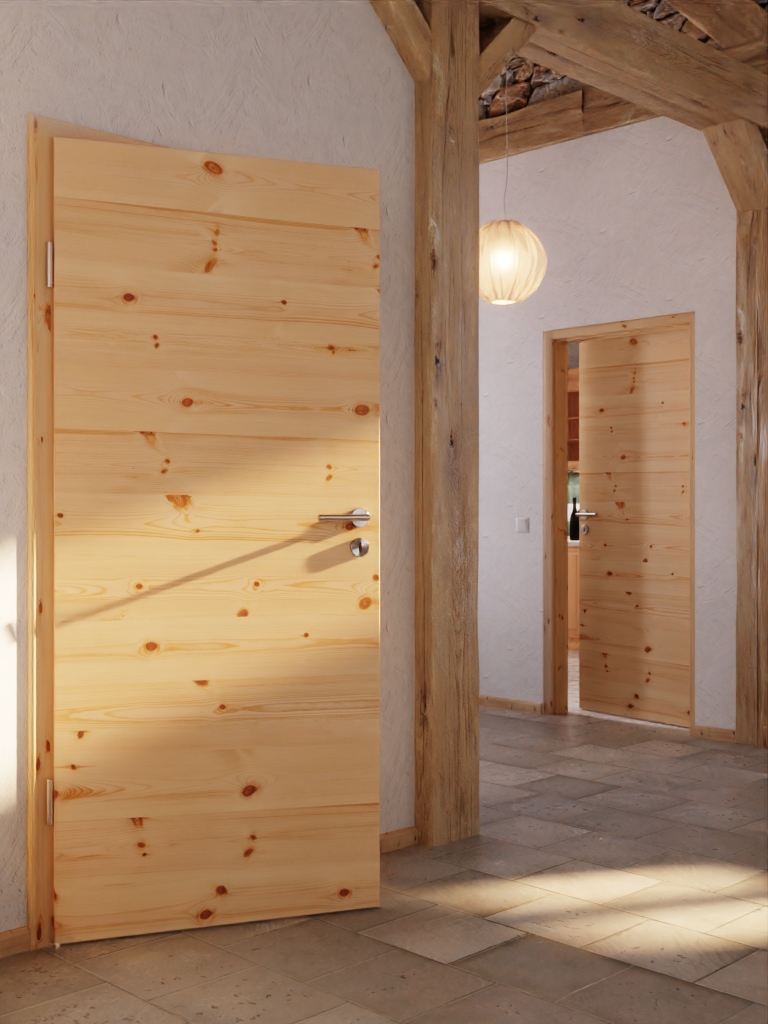 Dzięki klejonemu konstrukcji warstwowemu drzwi z litego drewna wykazują szczególną stabilność. Wybór wykończenia powierzchni należy do Ciebie – od nieobrobionego przez olejowane po lakierowane, w menu poniżej masz różne możliwości.
