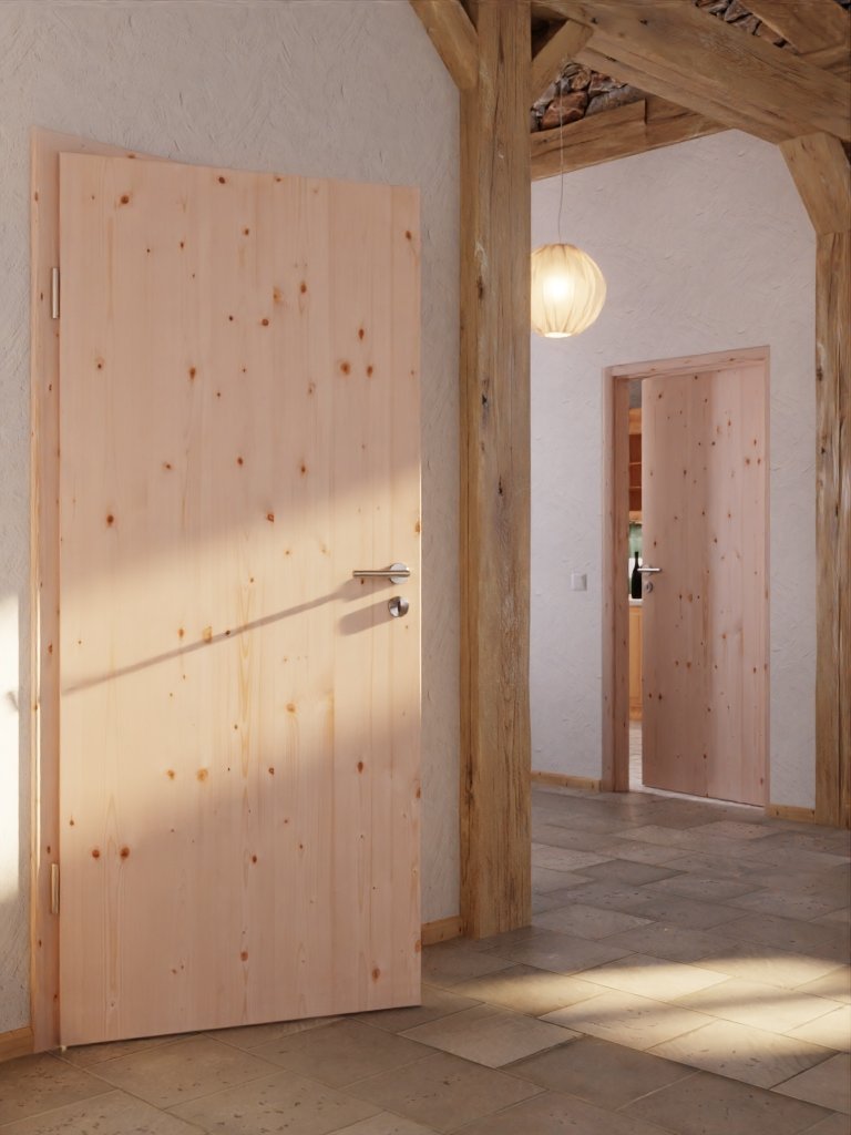 Za szczególnie wysoką stabilność drzwi z litego drewna odpowiada produkcja w technologii klejonej warstwowo. Powierzchnię można dostosować do swoich potrzeb za pomocą odpowiedniego wykończenia. W menu konfiguracji znajdą Państwo różne opcje – od standardowej, nieobrobionej powierzchni po wysokiej jakości lakierowanie.