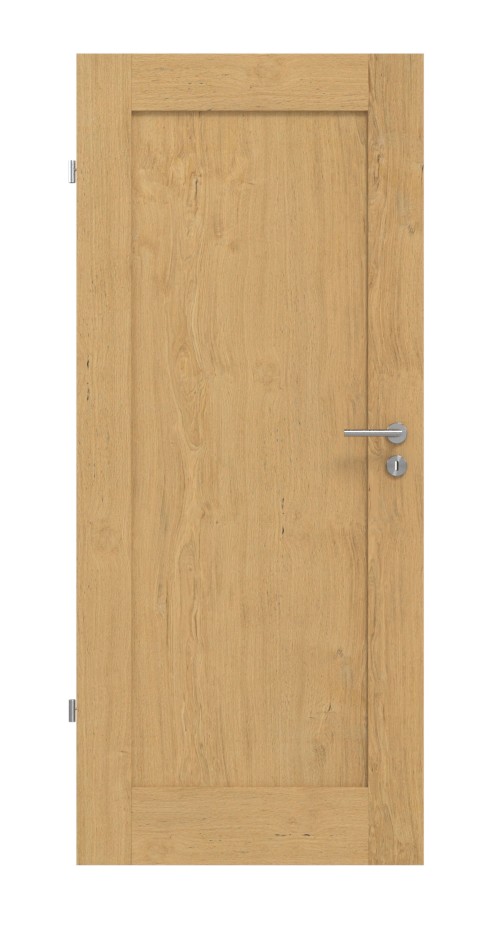 Szerokie fryzy otaczają dużą wypełnioną część w środku skrzydła drzwiowego. Razem tworzą nowoczesny wygląd minimalistycznej klarowności. Na każdym skrzydle drzwiowym rozwijają się słoje dębu w swojej naturalnej indywidualności.