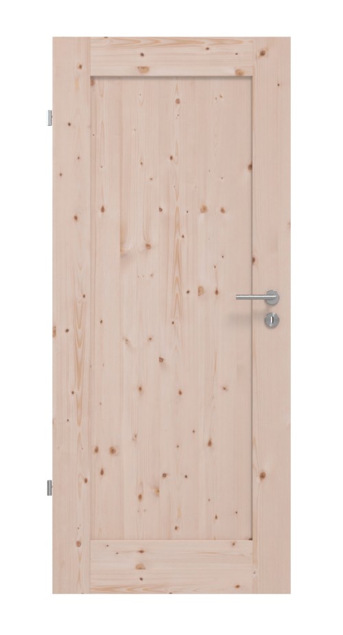 Nowoczesna prostota przejawia się w drzwiach wewnętrznych z szerokimi fryzami i wypełnieniem z prawdziwego drewna, które zajmuje większość skrzydła drzwiowego. Typowe usłojenie i wyraźne wtrącenia sęków nadają rustykalny wygląd drewna sosnowego.