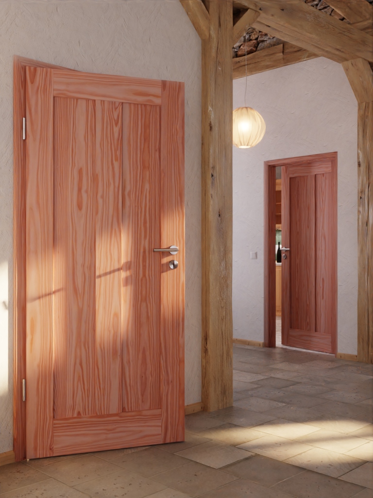 Dzięki klejonemu konstrukcji warstwowemu drzwi z litego drewna osiągają doskonałą stabilność. Aby chronić powierzchnię, można wybrać spośród różnych wykończeń to, które najlepiej odpowiada Twoim potrzebom. Jeśli wolisz samodzielnie pomalować drzwi, standardowo pozostają one nieprzetworzone, co zapewnia maksymalną elastyczność.