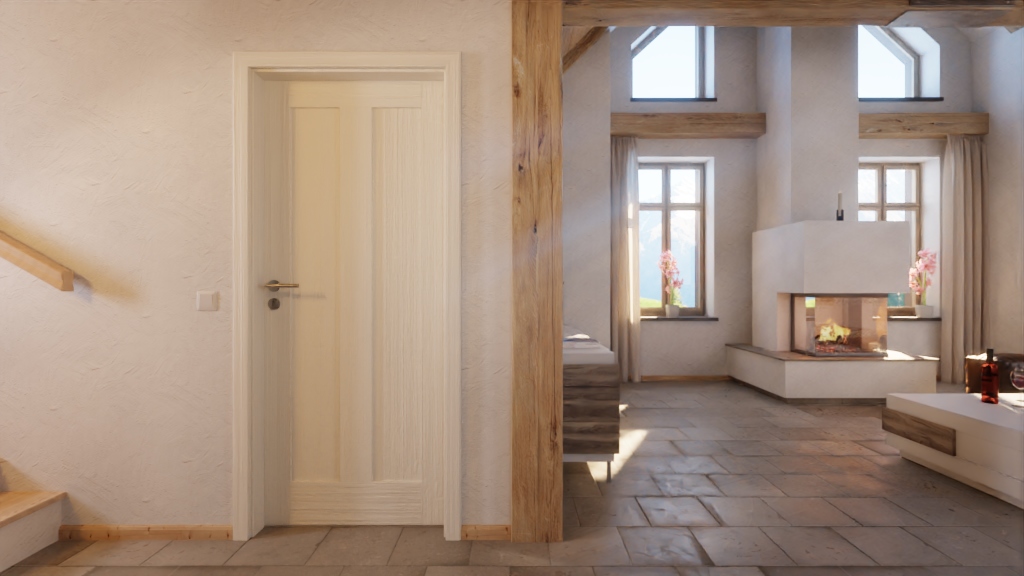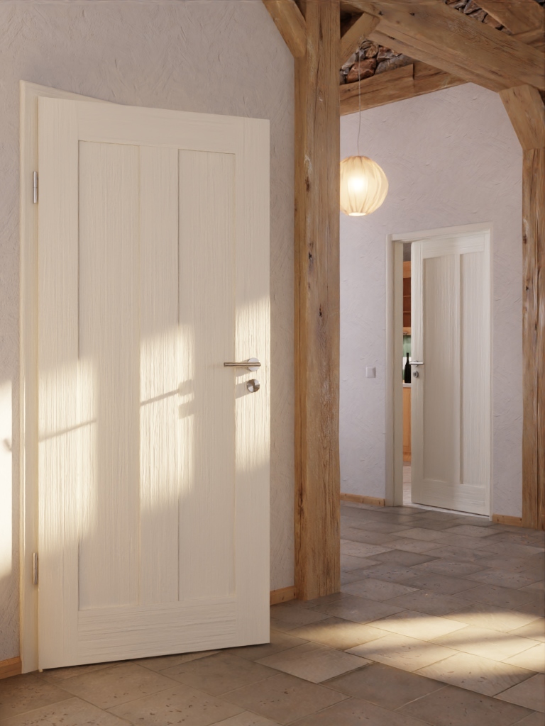 Prosta drzwi wewnętrzne z drewna litego w konstrukcji warstwowo klejonej: